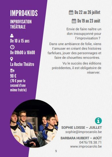 Envie de faire naître un don insoupçonné pour l’improvisation ? Dans une ambiance de folie, viens t’amuser en créant des histoires farfelues, jouer des personnages et faire de chouettes rencontres. Vu le succès des éditions précédentes, il est obligatoire de réserver.